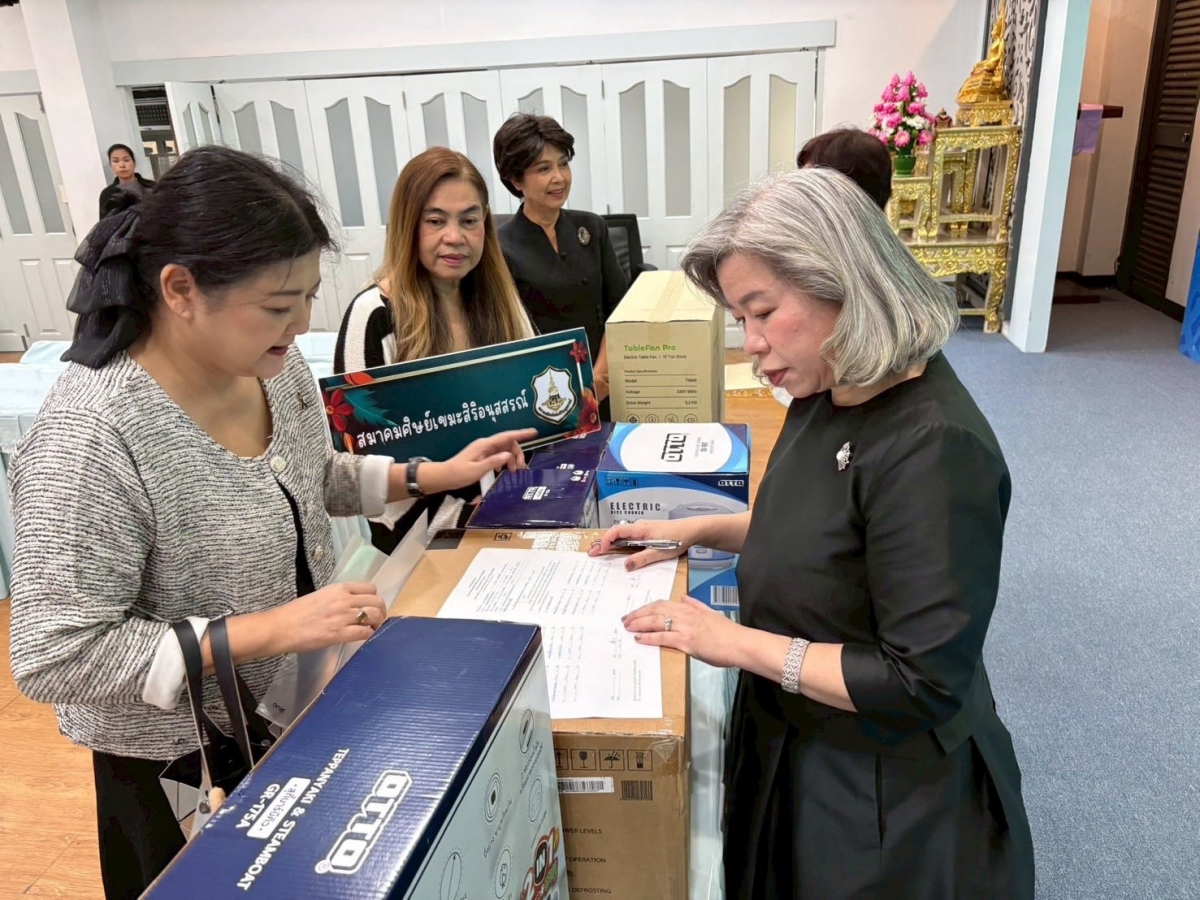 วันพุธที่ ๑๒ พฤศจิกายน ๒๕๖๘ คุณเยาวเรศ ชินวัตร ที่ปรึกษาสภาสมาคมสตรีแห่งชาติฯ ส่งมอบสินค้า จำนวน ๔ ลัง ประกอบด้วย รองเท้าสตรี ผ้าพันคอ และตุ๊กตากล่องสุ่มให้กับสภาสมาคมสตรีแห่งชาติ ในพระบรมราชินูปถัมภ์ และสมาคมศิษย์เขมะสิริอนุสรณ์ องค์กรสมาชิก สภาสมาคมสตรีแห่งชาติฯ ส่งมอบเครื่องใช้ไฟฟ้า อาทิ พัดลม หม้อสุกี้บาร์บีคิว ไมรโครเวฟ หม้อสุกี้ชาบู กาต้มน้ำไฟฟ้า เป็นต้น เพื่อร่วมทำบุญกับสภากาชาดไทย ผ่าน “ร้านกาชาดสภาสมาคมสตรีแห่งชาติฯ” จัดขึ้น ๑๑–๒๑ ธันวาคม ๒๕๖๘ ที่ สวนลุมพินี โดยมี นางเบญจมาศ ปริญญาพล  ที่ปรึกษาประธานสภาสมาคมสตรีแห่งชาติฯ นางทิพวรรณ กิตติสถาพร รองประธานสภาสมาคมสตรีแห่งชาติฯ นางสาวอินทิรา สวัสดิ์พาณิขย์ เลขาธิการสภาสมาคมสตรีแห่งชาติฯ และนางเยาวมาลย์ วัชระเรืองศรี ประธานฝ่ายสถานที่ฯ ร่วมกันเป็นผู้รับมอบ ณ บ้านพระกรุณานิวาสน์