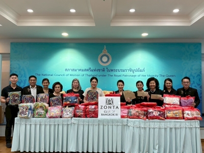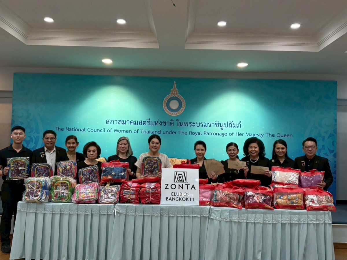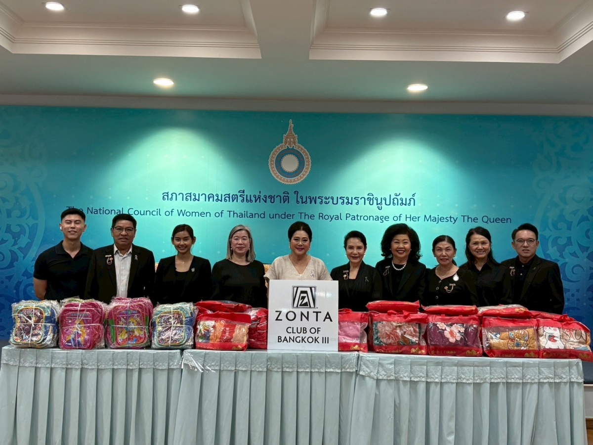 วันพฤหัสบดีที่ ๑๓ พฤศจิกายน ๒๕๖๘ เวลา ๑๕. ๓๐ น. ดร.ลาลีวรรณ กาญจนจารี ประธานสภาสมาคมสตรีแห่งชาติ ในพระบรมราชินูปถัมภ์ และคณะกรรมการฯ ให้การต้อนรับ ดร.ณัฐฏ์นันท์ญา อัศวณิชย์ชากร นายกสโมสรซอนต้ากรุงเทพ 3 พร้อมทั้งคณะกรรมการสโมสรซอนต้ากรุงเทพ 3 เดินทางมามอบสิ่งของ ประกอบด้วย ผ้าห่ม และกระเป๋านักเรียน เพื่อนำไปร่วมออกร้านกาชาดสภาสมาคมสตรีแห่งชาติฯ ประจำปี ๒๕๖๘ ณ บ้านพระกรุณานิวาสน์ จัดขึ้นระหว่าง วันที่ ๑๑ - ๒๑ ธันวาคม ๒๕๖๘ เวลา ๑๑.๐๐ - ๒๒.๐๐ น.ณ บริเวณสวนลุมพินี โซน ๖ (ประตู ๑ ถนนวิทยุ) กรุงเทพมหานคร