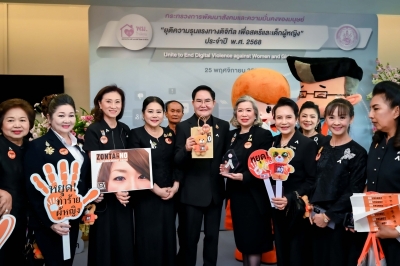 วันที่ 25 พฤศจิกายน 2568 เวลา 14.00 น. ดร. ลาลีวรรณ กาญจนจารี ประธานสภาสมาคมสตรีแห่งชาติ ในพระบรมราชินูปถัมภ์ นำคณะกรรมการ ร่วมงานรณรงค์ยุติความรุนแรงต่อเด็ก สตรี และบุคคลในครอบครัว ประจำปี 2568 ภายใต้แนวคิด “ยุติความรุนแรงทางดิจิทัล เพื่อสตรีและเด็กผู้หญิง” เนื่องในวันที่ 25 พฤศจิกายนของทุกปี เป็นวันยุติความรุนแรงต่อสตรีสากล (International Day for the Elimination of Violence against Women)โดยมี นายอัครา พรหมเผ่า รัฐมนตรีว่าการกระทรวงการพัฒนาสังคมและความมั่นคงของมนุษย์ (รมว.พม.) เป็นประธานเปิดงานฯ ภายใต้แนวคิด “ยุติความรุนแรงทางดิจิทัล เพื่อสตรีและเด็กผู้หญิง” และนายกันตพงศ์ รังษีสว่าง ปลัดกระทรวงการพัฒนาสังคมและความมั่นคงของมนุษย์ (ปลัด พม.) นางจตุพร โรจนพานิช อธิบดีกรมกิจการสตรีและสถาบันครอบครัว คณะผู้บริหารกระทรวง พม. ผู้แทนภาคีเครือข่าย ศิลปินดารา และสื่อมวลชน เข้าร่วม ณ ห้องประชุมปกรณ์ อังศุสิงห์ ชั้น 2 อาคารกรมพัฒนาสังคมและสวัสดิการ กระทรวงการพัฒนาสังคมและความมั่นคงของมนุษย์ สะพานขาว กรุงเทพฯ และถ่ายทอดสด (LIVE) ผ่านระบบออนไลน์