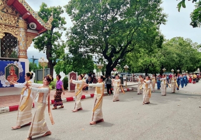๑๑๐. สมาคมสตรีนครเชียงใหม่ องค์กรสมาชิกสภาสตรีแห่งชาติในพระบรมราชินูปถัมภ์ จัดโครงการสืบสานประเพณีล้านนาถวายเทียนพรรษา ประจำปี ๒๕๖๕ ณ วัดเจดีย์หลวงวรวิหาร วัดพระสิงห์วรวิหาร และวัดสวนดอกพระอารามหลวง