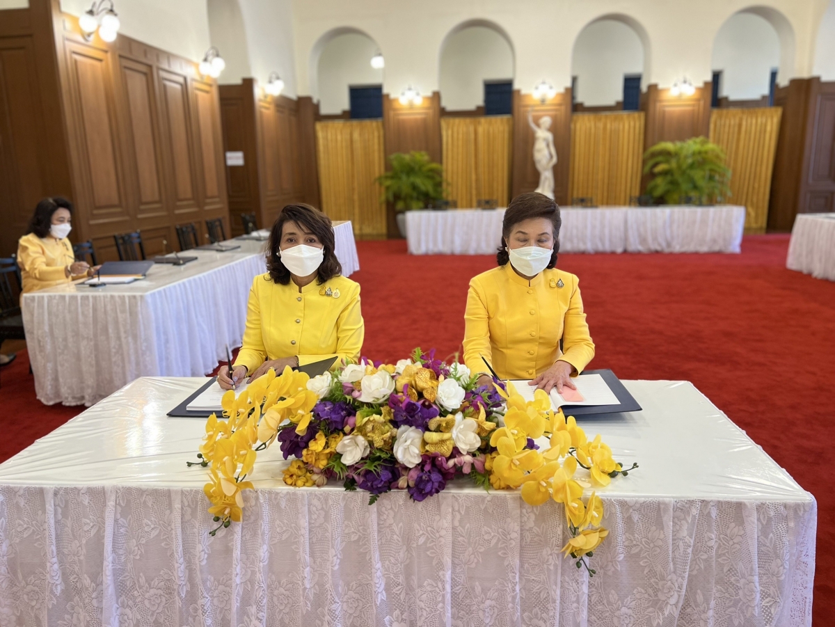 ๑๒๔.ประธานสภาสตรีแห่งชาติในพระบรมราชินูปถัมภ์ พร้อมด้วยคณะกรรการ นำแจกันดอกไม้ไปทูลเกล้าทูลกระหม่อมถวายเบื้องหน้าพระบรมฉายาลักษณ์พระบาทสมเด็จพระเจ้าอยู่หัว พร้อมลงนามถวายพระพร เนื่องในโอกาสวันเฉลิมพระชนมพรรษา ๒๘ กรกฎาคม ๒๕๖๕