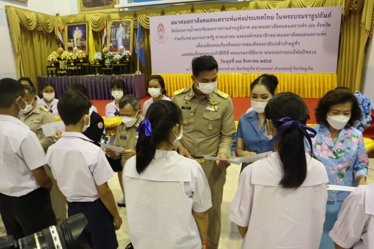 วันพุธที่ ๑๗ สิงหาคม ๒๕๖๕ นางพรพินิจ พัฒนสุวรรณา นายกสมาคมสตรีภูเก็ต องค์กรสมาชิกสภาสตรีแห่งชาติฯ และ นางสาวณัฐชนก สุจริตกุล อุปนายกสมาคมสตรีนักธุรกิจและวิชาชีพแห่งประเทศไทย-ภูเก็ต องค์กรสมาชิกสภาสตรีแห่งชาติฯ และ นางจรรยาวรรณ สุวัณณาคาร กรรมการอำนวยการ และประธานภาคใต้ สภาสตรีแห่งชาติในพระบรมราชินูปถัมภ์ พร้อมด้วยคณะกรรมการเข้าร่วมกิจกรรมสมาคมสภาสังคมสงเคราะห์แห่งประเทศไทยในพระบรมราชูปถัมภ์ ร่วมกับ หน่วยงานภาครัฐ ภาคเอกชน และองค์กรสมาชิกสมาคมสภาสังคมสงเคราะห์ฯ จัดโครงการน้ำพระทัยพระราชทานส่วนภูมิภาคฯ สมาคมสภาสังคมสงเคราะห์ ๙๖ จังหวัด โดยมี นายณรงค์ วุ่นซิ้ว ผู้ว่าราชการจังหวัดภูเก็ต เป็นประธานเปิดโครงการน้ำพระทัยพระราชทานส่วนภูมิภาคฯ สมาคมสภาสังคมสงเคราะห์ฯ ประจำปี ๒๕๖๕ ซึ่ง สมาคมสภาสังคมสงเคราะห์แห่งประเทศไทย ในพระบรมราชูปถัมภ์ ร่วมกับจังหวัดภูเก็ต จัดขึ้น เพื่อเฉลิมพระเกียรติพระบาทสมเด็จพระเจ้าอยู่หัว เนื่องในโอกาสเฉลิมพระชนมพรรษา ๗๐ พรรษา ๒๘ กรกฎาคม ๒๕๖๕และสมเด็จพระนางเจ้าสิริกิติ์พระบรมราชินีนาถ พระบรมราชชนนีพันปีหลวง เนื่องในโอกาสเฉลิมพระชนมพรรษา ๙๐ พรรษา ๑๒ สิงหาคม ๒๕๖๕ ณ โรงเรียนราชประชานุเคราะห์ ๓๖ จังหวัดภูเก็ต