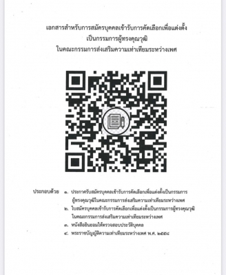 สภาสตรีแห่งชาติในพระบรมราชินูปถัมภ์ จึงเชิญชวนองค์กรสมาชิก สมัครคัดเลือกเพื่อแต่งตั้งเป็นกรรมการผู้ทรงคุณวุฒิในคณะกรรมการส่งเสริมความเท่าเทียมระหว่างเพศ สามารถดาวน์โหลดรายละเอียดการสมัครฯ พร้อมใบสมัครได้ที่เว็บไซค์กรมกิจการสตรีและสถาบันครอบครัว www.dwf.go.th