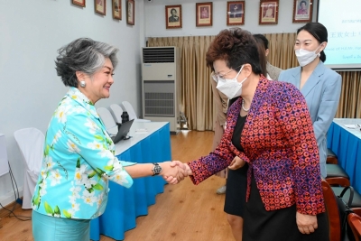 วันพุธที่ ๑ มีนาคม ๒๕๖๖ เวลา ๑๐.๐๐ น.  ศาสตราจารย์  ดร.หวัง ฮวน ภริยา นายหาน จื้อเฉียง เอกอัครราชทูตสาธารณรัฐประชาชนจีนประจำประเทศไทย และคณะ  เข้าเยี่ยมสภาสมาคมสตรีแห่งชาติ ในพระบรมราชินูปถัมภ์ เนื่องในโอกาสวันที่ ๘ มีนาคม ของทุกปีเป็นวันสตรีสากล  โดยให้เกียรติสนทนาแลกเปลี่ยนความคิดเห็นกับ นางสาวสุกัญญา ประจวบเหมาะ ประธานสภาสมาคมสตรีแห่งชาติฯ เกี่ยวกับความร่วมมือและการแลกเปลี่ยนความคิดเห็นระหว่างสตรีจีน-ไทย ความเท่าเทียมทางเพศ การพัฒนาอาชีพของสตรีและการศึกษาของเด็กและเยาวชนเป็นต้น และมีคณะกรรมการสภาสมาคมสตรีแห่งชาติฯ เข้าร่วมให้การต้อนรับอย่างพร้อมเพรียง และ จากการสนทนาแลกเปลี่ยนความคิดเห็น โดยภริยาเอกอัครราชทูตสาธารณรัฐประชาชนจีนประจำประเทศไทย กล่าวชื่นชมยกย่องผลงานของสภาสมาคมสตรีแห่งชาติฯ ในการพิทักษ์สิทธิประโยชน์ของสตรี พัฒนาศักยภาพของสตรีในทุกภูมิภาค ส่งเสริมความเท่าเทียมกันทางเพศและเสริมสร้างความสามัคคีตลอดจนพัฒนากิจการสาธารณะกุศลและการแลกเปลี่ยนสังคมวัฒนธรรมจีน-ไทย อันจะเป็นการสร้างพลังขับเคลื่อนความเข้าใจและความร่วมมือระหว่างจีนและไทยให้มีความลึกซึ้งมากยิ่งขึ้นสืบไป