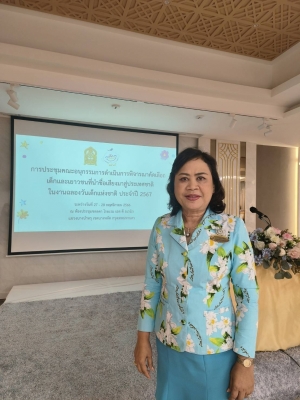 วันจันทร์ที่ ๒๗  พฤศจิกายน ๒๕๖๖ นางสาวสุกัญญา ประจวบเหมาะ ประธานสภาสมาคมสตรีแห่งชาติ ในพระบรมราชินูปถัมภ์ มอบหมายให้ ดร.ฉันทนา เปียทอง รองประธานสภาสมาคมสตรีแห่งชาติฯ เข้าร่วมประชุมคณะอนุกรรมการดำเนินการพิจารณาคัดเลือกเด็กและเยาวชนที่นำชื่อเสียงมาสู่ประเทศชาติ ในงานฉลองวันเด็กแห่งชาติ ประจำปี ๒๕๖๗