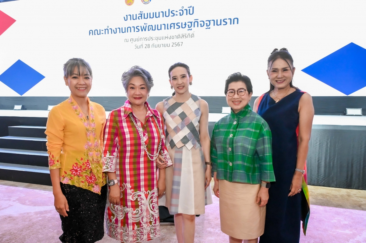 วันเสาร์ที่ ๒๘ กันยายน ๒๕๖๗ ณ ศูนย์การประชุมแห่งชาติสิริกิติ์ นางสาวสุกัญญา ประจวบเหมาะ ประธานสภาสมาคมสตรีแห่งชาติ ในพระบรมราชินูปถัมภ์ พร้อมด้วยคณะกรรมการ สภาสมาคมสตรีแห่งชาติฯ เข้าร่วมงานการสัมมนาประจำปี คณะทำงานการพัฒนาเศรษฐกิจฐานราก และงานผ้าขาวม้าทอใจ ประจำปี ๒๕๖๗ ในฐานะภาคีเครือข่าย ที่ร่วมขับเคลื่อน สนับสนุนการนำภูมิปัญญาท้องถิ่นมาสร้างสรรค์กับผลผลิตการเกษตรของท้องถิ่น ผ่านการแปรรูป โดยมี นายฐาปน สิริวัฒนภักดี ประธานเจ้าหน้าที่บริหาร บริษัท ไทยเบฟเวอเรจ จำกัด (มหาชน) หัวหน้าทีมภาคเอกชนคณะทำงานการพัฒนาเศรษฐกิจฐานราก และประธานคณะกรรมการโครงการผ้าขาวม้าท้องถิ่นหัตถศิลป์ไทย กล่าวในงานสัมมนาประจำปีคณะทำงานการพัฒนาเศรษฐกิจฐานราก ว่าคณะทำงานการพัฒนาเศรษฐกิจฐานราก ได้ดำเนินงานมาอย่างต่อเนื่องเป็นปีที่ ๙ นับตั้งแต่ ปี ๒๕๕๙ เพื่อส่งเสริมเศรษฐกิจระดับชุมชนท้องถิ่นให้มีความเข้มแข็ง มีศักยภาพในการแข่งขัน สามารถพึ่งพาตนเองได้ ซึ่งจะช่วยยกระดับมาตรฐานการครองชีพและความเป็นอยู่ของประชาชนในชุมชนให้ดีขึ้นและนำไปสู่การแก้ไขปัญหาความยากจน ความเหลื่อมล้ำ และความไม่เสมอภาคตามเป้าหมายการพัฒนาของ ยุทธศาสตร์ชาติ โดยเฉพาะด้านการสร้างโอกาสและความเสมอภาคทางสังคมเพื่อให้ทุกคนได้รับผลประโยชน์จากการพัฒนาอย่างทั่วถึงและเป็นธรรม ผ่านการปรับโครงสร้างทางเศรษฐกิจและพฤติกรรม และด้านการสร้างความสามารถในการแข่งขัน โดยการพัฒนาและส่งเสริมการสร้างมูลค่าสินค้าเกษตรเพื่อสร้างรายได้ให้เกษตรกรและการส่งเสริมวิสาหกิจเริ่มต้นและวิสาหกิจชุมชน