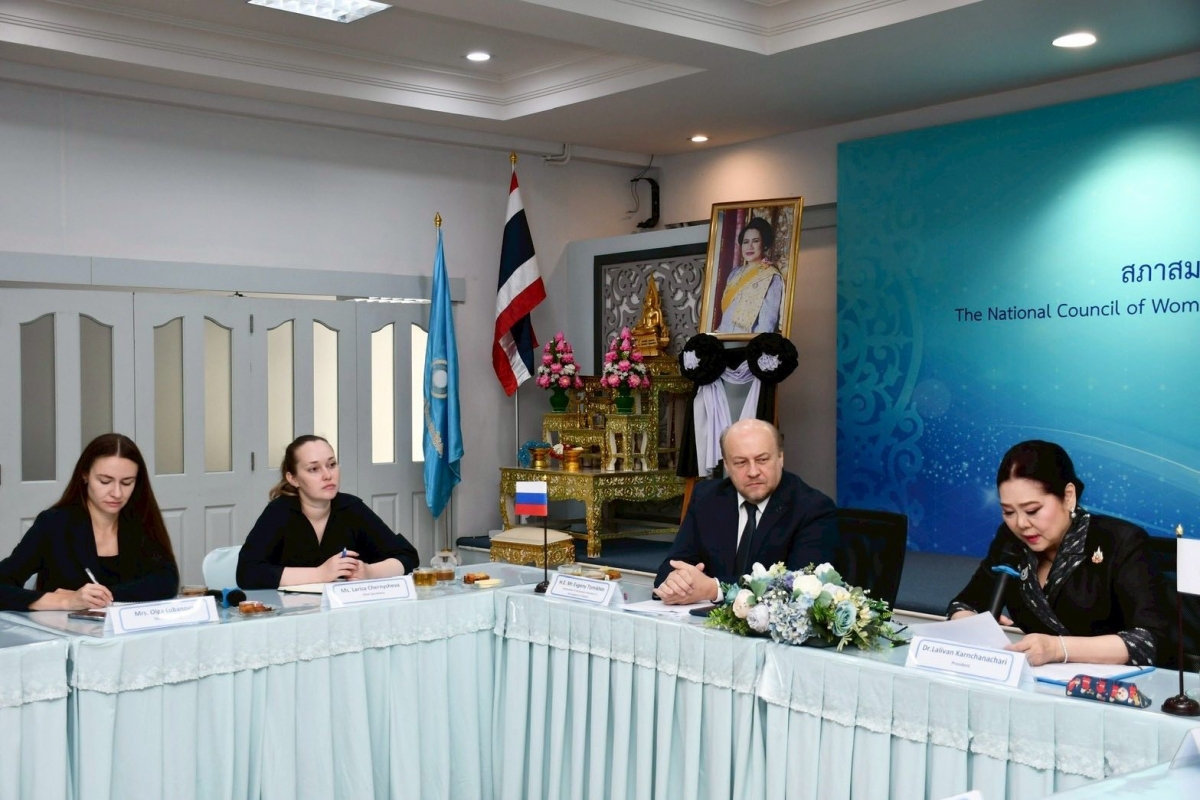 ในโอกาสนี้ ประธานสภาสมาคมสตรีแห่งชาติฯ ได้แนะนำภารกิจและบทบาทของสภาสมาคมสตรีแห่งชาติฯ ในฐานะองค์กรภายใต้พระบรมราชินูปถัมภ์ ซึ่งทำหน้าที่เป็นศูนย์กลางประสานงานองค์กรสตรีทั่วประเทศ รวมถึงการดำเนินกิจกรรมด้านสังคม วัฒนธรรม และมนุษยธรรมอย่างต่อเนื่อง เพื่อส่งเสริมคุณภาพชีวิตสตรี ครอบครัว และสังคมโดยรวม ขณะที่ฝ่ายเอกอัครราชทูตรัสเซียได้แสดงความชื่นชมต่อการดำเนินงานของสภาสมาคมสตรีแห่งชาติฯ และแสดงความสนใจในการส่งเสริมความร่วมมือกับองค์กรสตรีของประเทศไทยในหลากหลายมิติ