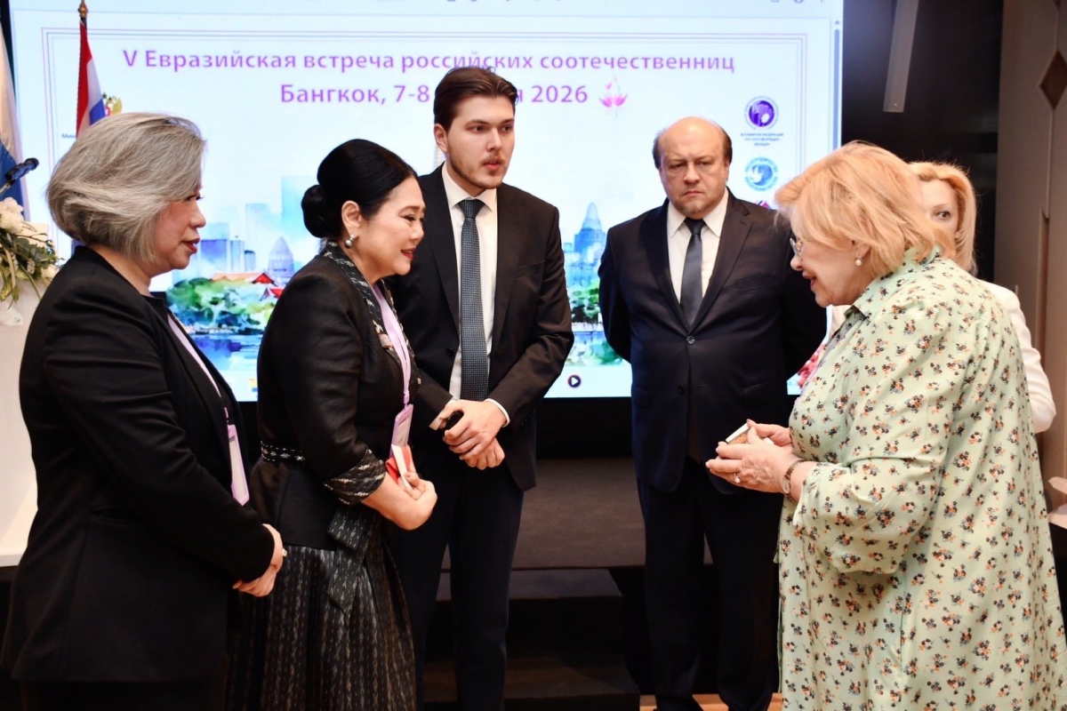 วันที่ 7 เมษายน 2569 เวลา 10.00 น.ณ โรงแรมดุสิตดีทู ถนนสี่พระยา กรุงเทพมหานคร ดร.ลาลีวรรณ กาญจนจารี ประธานสภาสมาคมสตรีแห่งชาติ ในพระบรมราชินูปถัมภ์ เข้าร่วมการประชุม “The 5th Eurasian Meeting of Russian Women Compatriots” ณ กรุงเทพมหานคร ตามคำเชิญของ ฯพณฯ นายเยฟเกนี โทมิคิน (H.E. Mr. Evgeny Tomikhin) เอกอัครราชทูตสหพันธรัฐรัสเซียประจำประเทศไทย