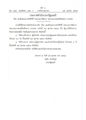 ตามที่ได้มีประกาศสำนักพระราชวัง เรื่อง สมเด็จพระนางเจ้าสิริกิติ์ พระบรมราชินีนาถ พระบรมราชชนนีพันปีหลวง สวรรคต ลงวันที่ ๒๔ ตุลาคม ๒๕๖๘ นั้น รัฐบาลได้รับทราบด้วยความโทมนัสยิ่ง จึงเห็นสมควรประกาศดังต่อไปนี้