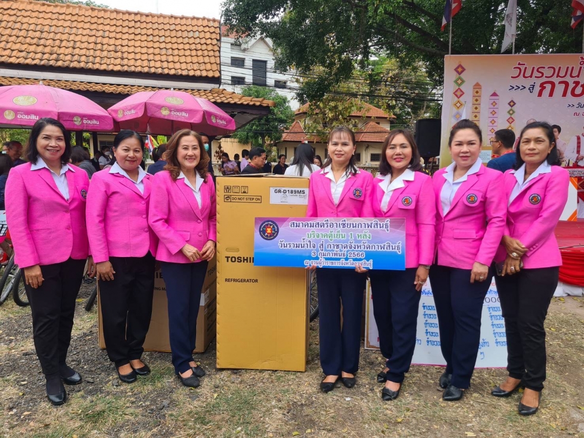 วันที่ ๓ กุมภาพันธ์ ๒๕๖๖ ดร.อุมารินทร์ เลิศสหพันธ์ นายกก่อตั้งสมาคมสตรีอาเซียนกาฬสินธุ์ มอบหมายให้นางมัณทนา สุภัควณิช อุปนายกสมาคมพร้อมคณะกรรมการสมาชิกสมาคมฯ เข้าร่วมงาน "วันรวมน้ำใจสู่กาชาด" จังหวัดกาฬสินธุ์ประจำปี ๒๕๖๖ โดยมอบตู้เย็น ๑ หลัง ในนามของสมาคมสตรีอาเซียนกาฬสินธุ์ องค์กรสมาชิกสภาสมาคมสตรีแห่งชาติฯ เพื่อเป็นของรางวัลในการออกสลากกาชาดการกุศลจังหวัดกาฬสินธุ์ เพื่อสนับสนุนเป็นรางวัลในการออกสลากกาชาดการกุศลจังหวัดกาฬสินธุ์ ตามภารกิจชองเหล่ากาชาดจังหวัดกาฬสินธุ์ และตามพันธกิจของสภากาชาดไทยในการให้ความช่วยเหลือพี่น้องประชาชนที่ประสบความเดือดร้อนจากภัยพิบัติต่างๆ ตลอดจนผู้ขาดแคลนยากจน ผู้ป่วยยากไร้ ผู้ด้อยโอกาส ผู้พิการ เด็กและคนชราเพื่อ ณ จวนผู้ว่าราชการจังหวัดกาฬสินธุ์