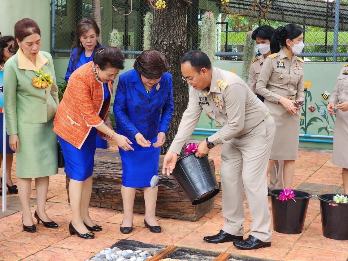 เวลา ๑๐.๐๐ น. นางอรพรรณ สินประสงค์ นายกสมาคมแม่ฯนนทบุรี นางผ่องเพ็ญอาชาเทวัญ นายกสมาคมสตรีนนทบุรี และนางสุกัญญา นิยมมาลัย นายกสธวท ปทุมนนท์ ร่วมกันนำคณะกรรมการร่วมจัดกิจกรรมโครงการน้ำพระทัยพระราชทานส่วนภูมิภาค สมาคมสภาสังคมสงเคราะห์ ๗๖ งงจังหวัดประจำปี ๒๕๖๖ โดยมี นายสุธี ทองแย้ม ผู้ว่าราชการจังหวัดนนทบุรีเป็นประธานเปิดกิจกรรมโครงการน้ำพระทัยพระราชทาน โดยมีกิจกรรมให้กำลังใจ รับฟังการขับร้องและการแสดงของเด็กบกพร่องทางการมองเห็นและการพัฒนาช้า ในโอกาสนี้ นายกสมาคมแม่ฯนนทบุรี นายกสมาคมสตรีนนทบุรีและนายกสธวท ปทุมนนท์นำคณะกรรมการร่วมกันมอบเครื่องอุปโภคบริโภค และจัดเลี้ยงอาหารกลางวันแก่เด็กพิการทุกประเภท ๒๕๐ คน และร่วมปรับภูมิทัศน์สวนบำบัดสำหรับเด็กพิการ ณ บ้านเฟื่องฟ้า จังหวัดนนทบุรี