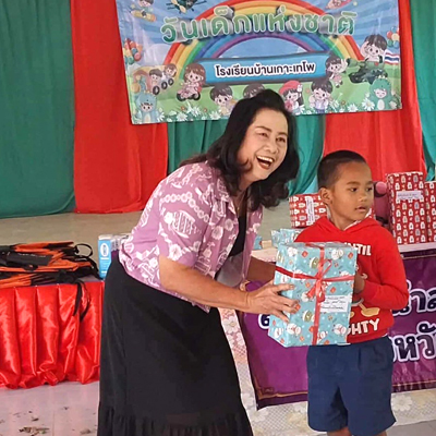 วันที่ ๖ มกราคม ๒๕๖๙ นางอนงค์ ไชยกุล นายกสมาคมผู้นำสตรีพัฒนาชุมชนจังหวัดอุทัยธานีพร้อมคณะกรรมการและสมาชิก นำของขวัญ ตุ๊กตา กระเป๋าขนมเปี๊ยะและมอบเงินสด จำนวน ๑๐,๐๐๐ บาท ไปมอบให้นักเรียนโรงเรียนบ้านเกาะเทโพ ใช้ในกิจกรรมวันเด็กแห่งชาติปี ๒๕๖๙ จำนวน ๔๕ คน ณ โรงเรียนบ้านเกาะเทโพ ตำบลเกาะเทโพ อำเภอเมือง จังหวัดอุทัยธานี